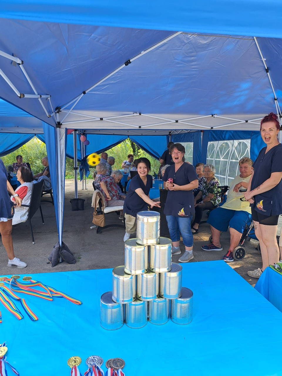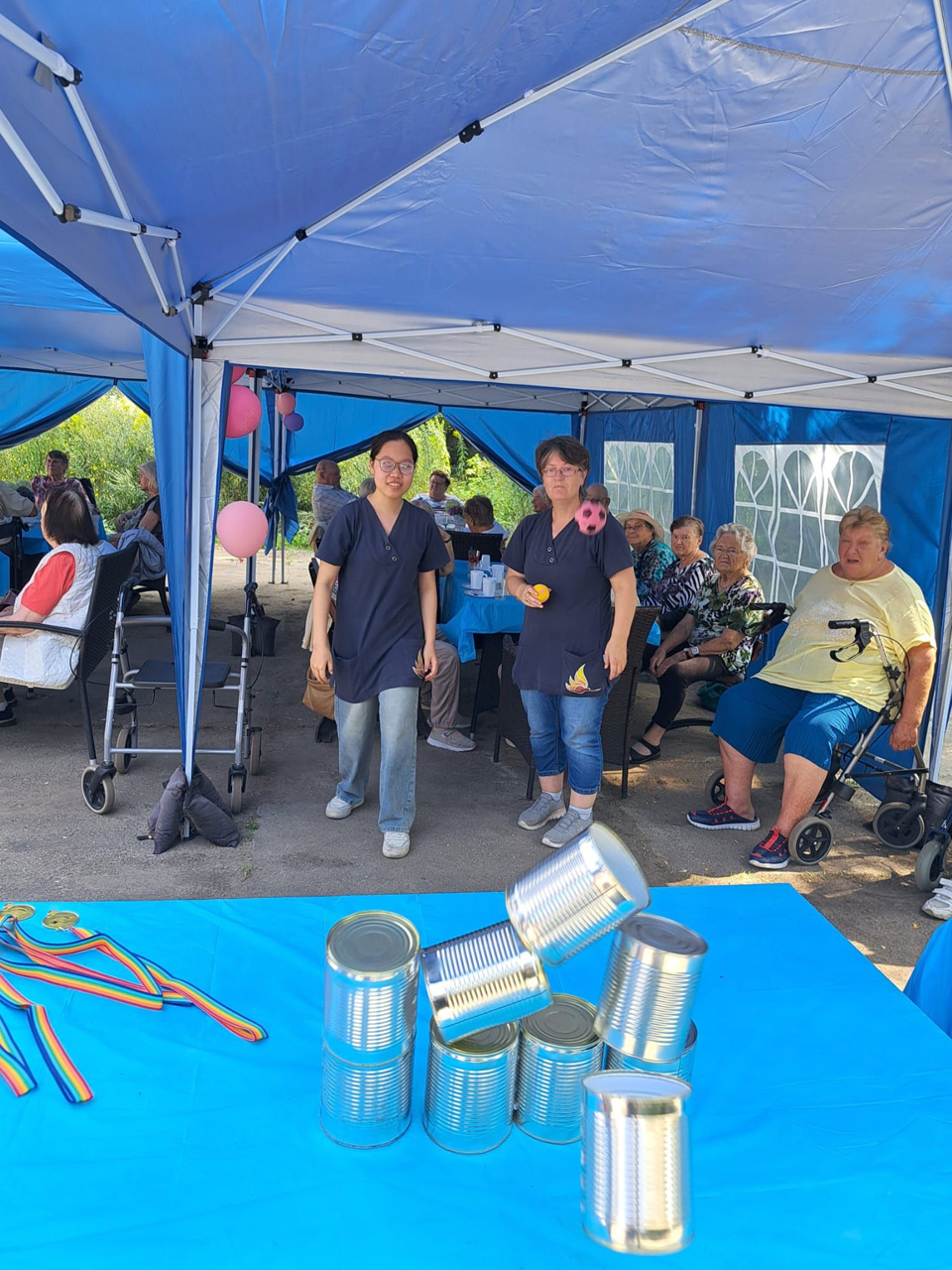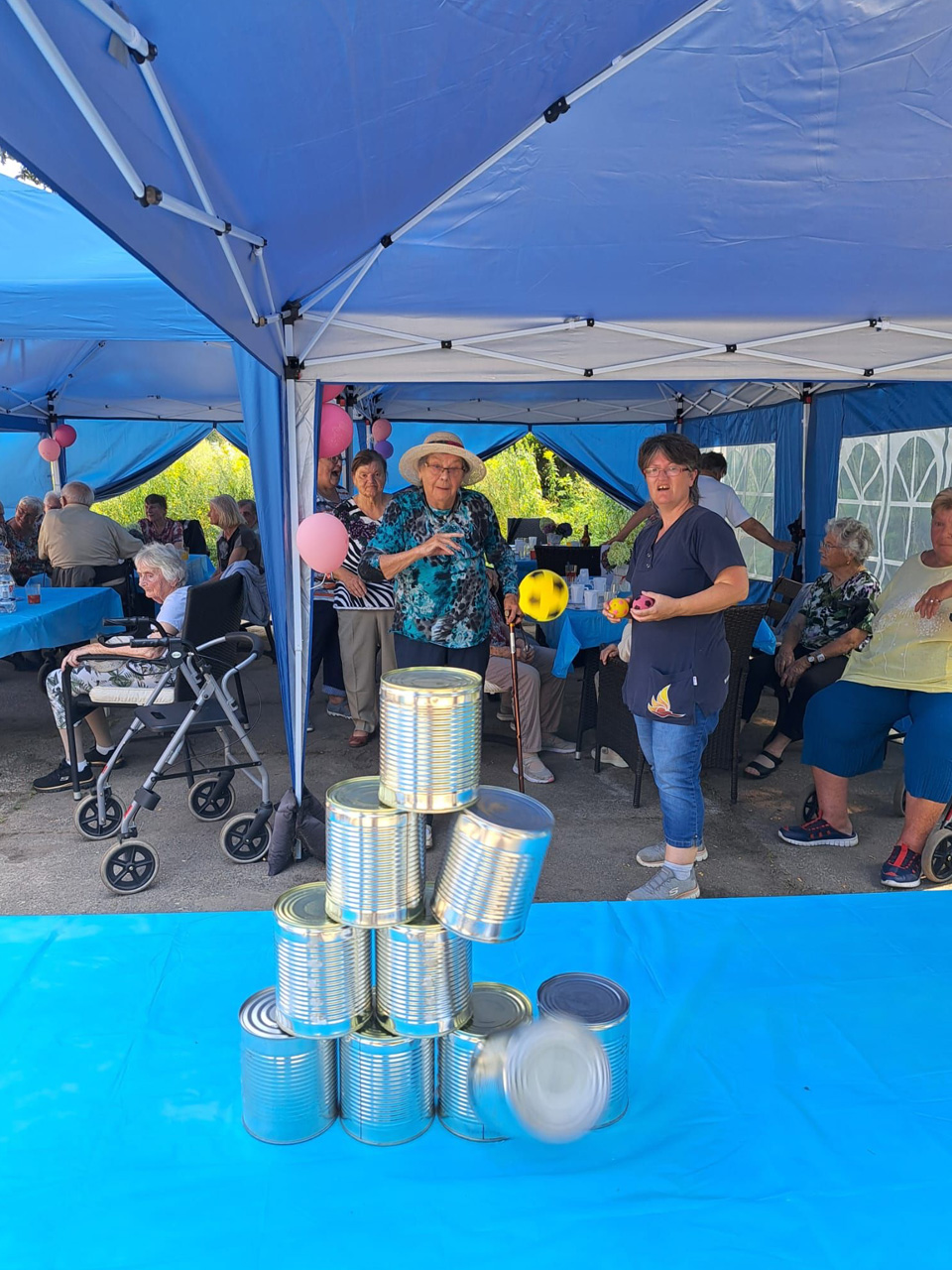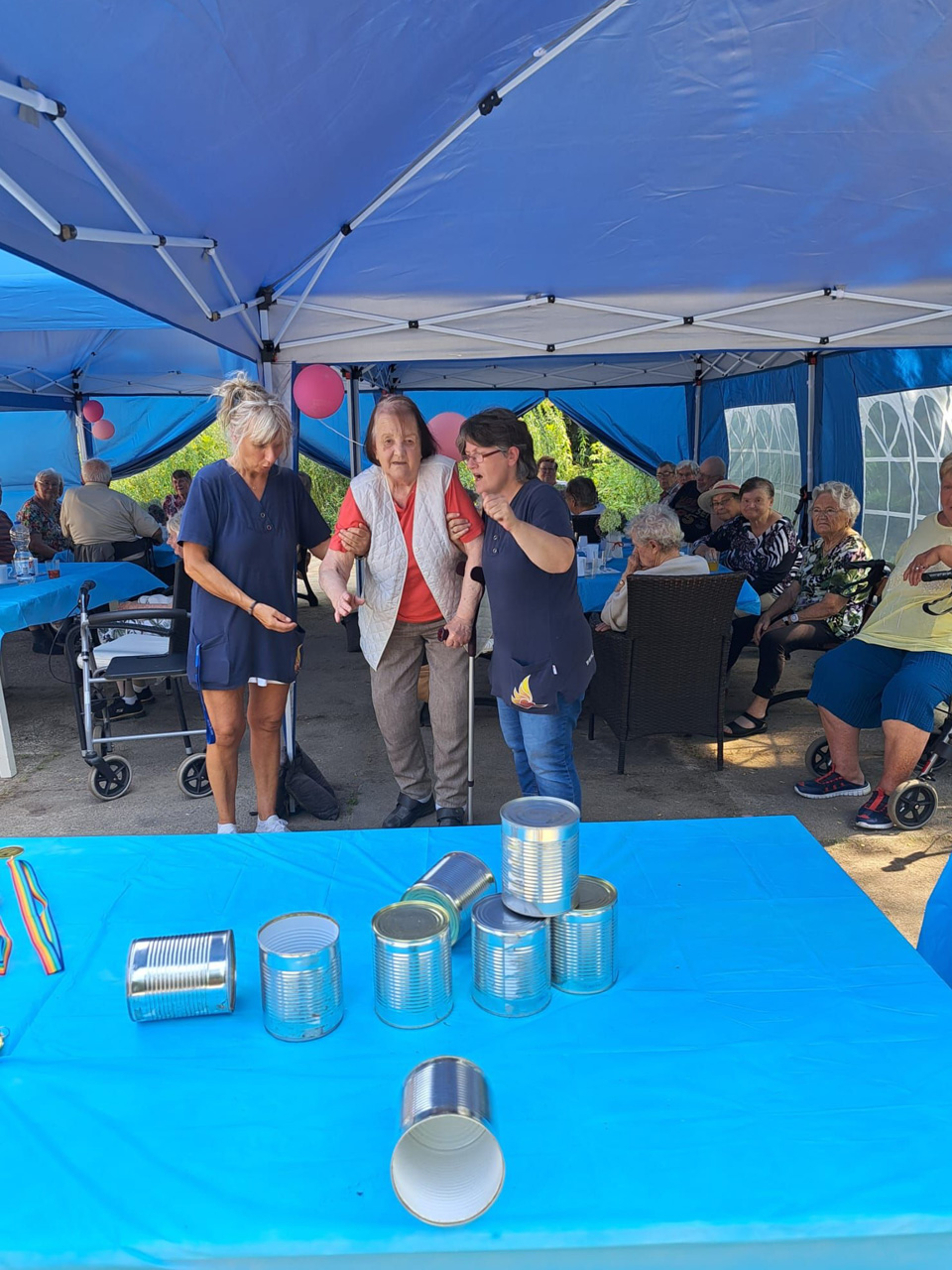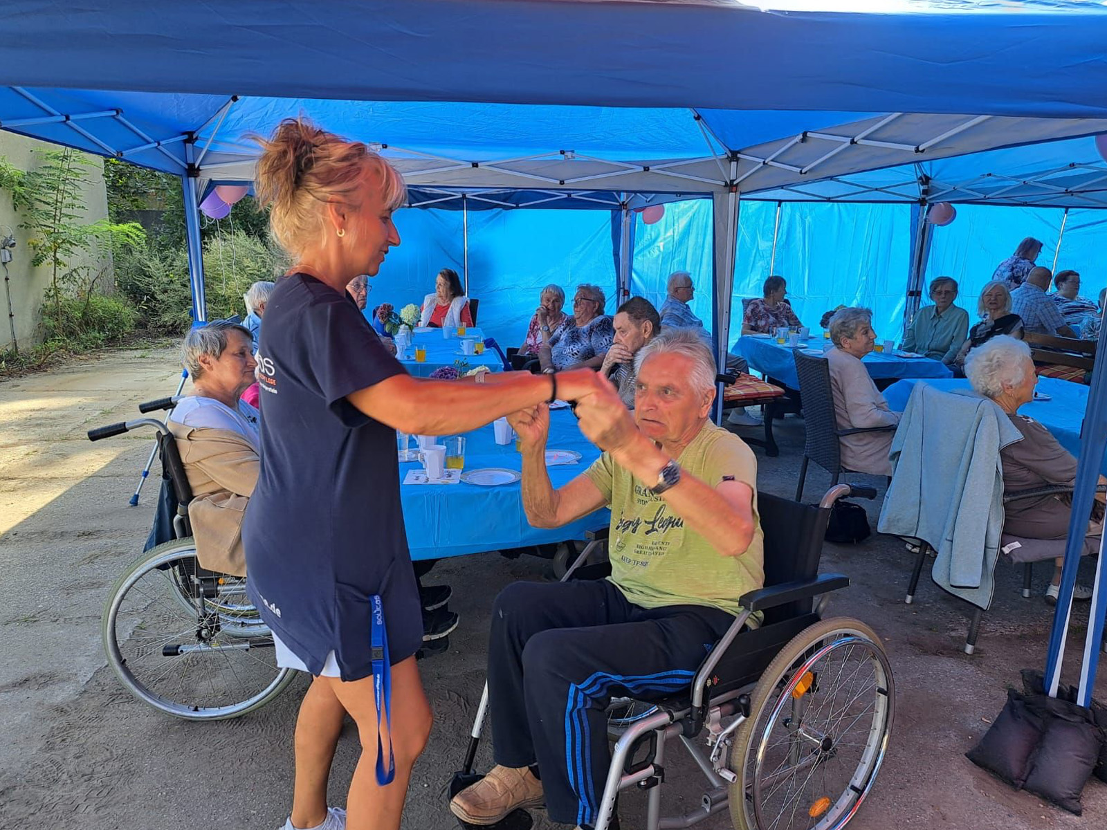 Für Unterhaltung war bestens gesorgt: Beim Dosenwerfen hatten alle großen Spaß – Gäste, Mitarbeiterinnen und unsere Chefin Ines Stoye-Angerstein machten begeistert mit. Außerdem begleitete ein Musiker mit seiner Gitarre das Sommerfest der Tagespflege, und es wurde viel getanzt. Von schwungvollen Tanzeinlagen bis hin zu einer fröhlichen Polonaise – die gute Stimmung war überall spürbar.