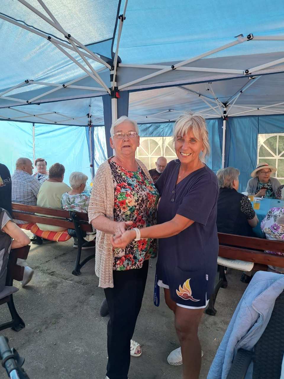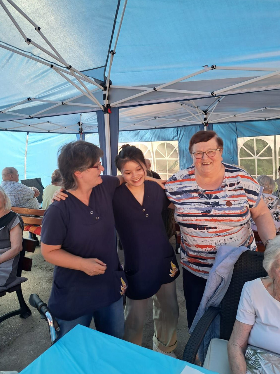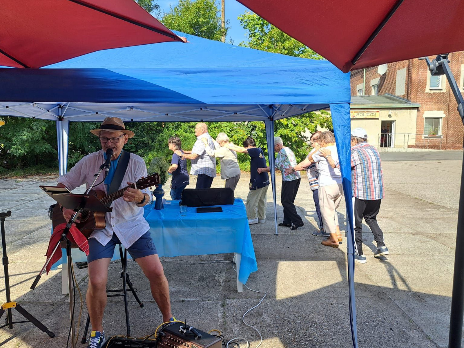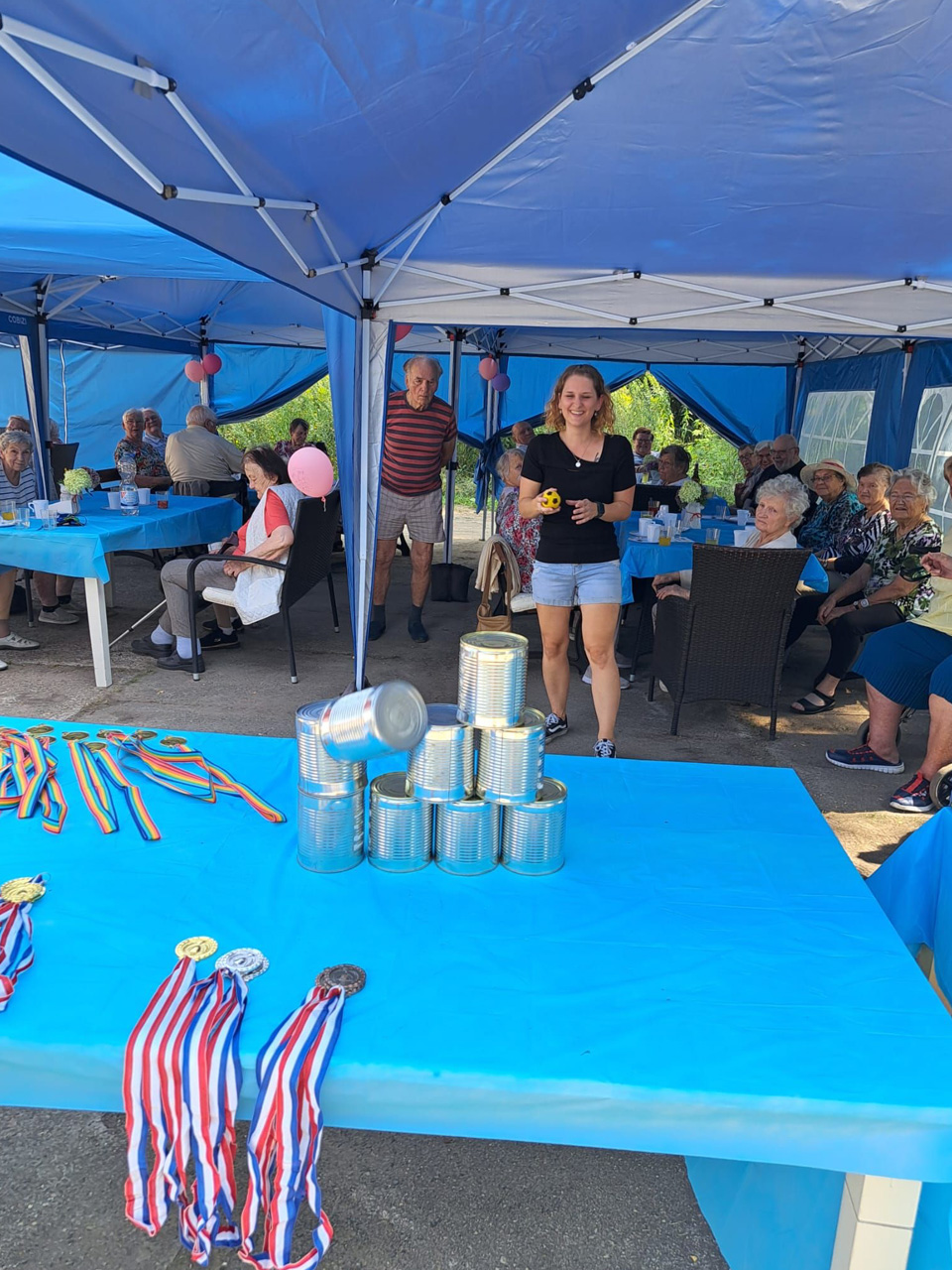 Für Unterhaltung war bestens gesorgt: Beim Dosenwerfen hatten alle großen Spaß – Gäste, Mitarbeiterinnen und unsere Chefin Ines Stoye-Angerstein machten begeistert mit. Außerdem begleitete ein Musiker mit seiner Gitarre das Sommerfest der Tagespflege, und es wurde viel getanzt. Von schwungvollen Tanzeinlagen bis hin zu einer fröhlichen Polonaise – die gute Stimmung war überall spürbar.